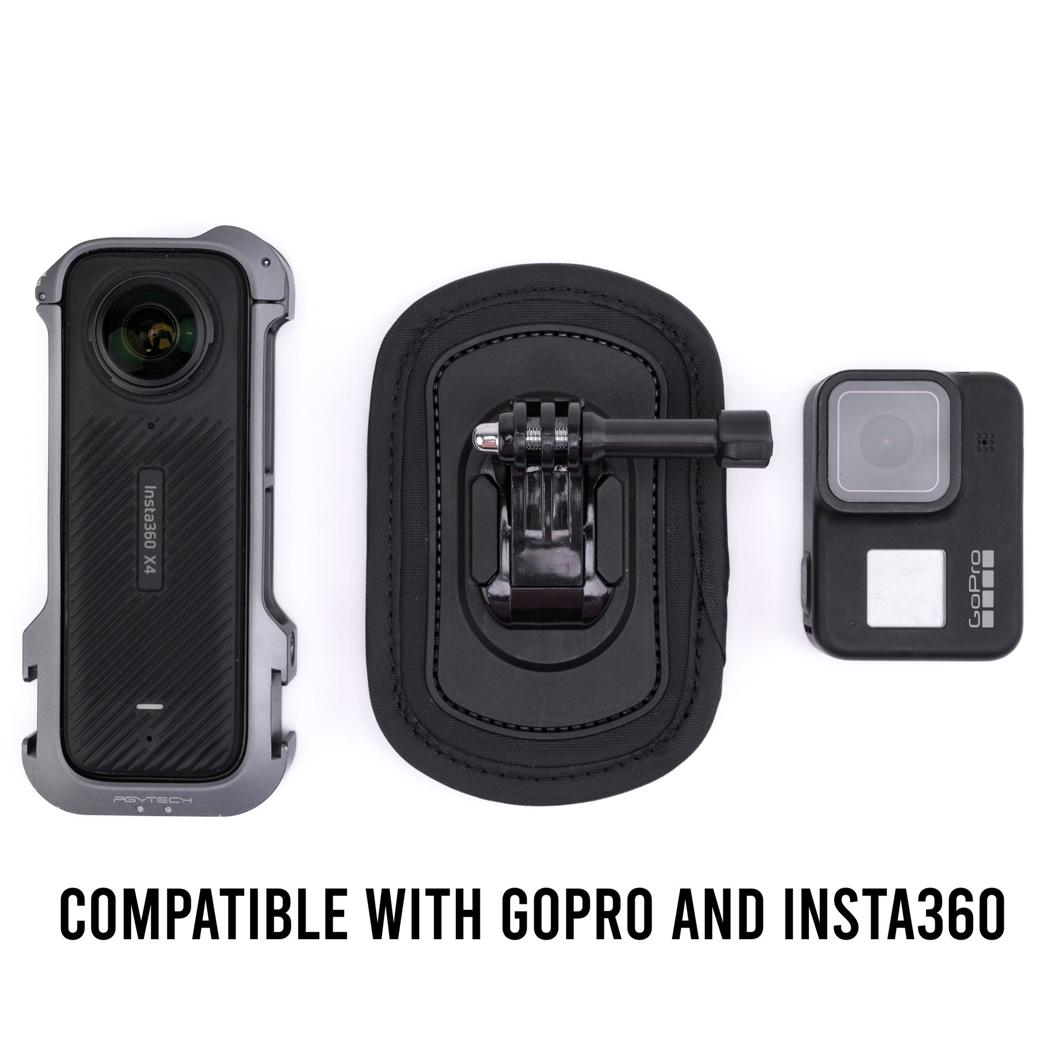 Action Camera Kit utilizes the 3-prong mounting system standard on most GoPro and Insta360 action cameras making it the perfect way to record action footage hand-free from your PRO-180X or PRO-180 Slim.